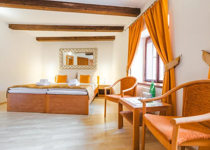 도시 내려다보고 있는 Pension Labyrint은 체스키크룸로프의 므네스트스키 공원에서 도보로 11분 거리에 있습니다. 호텔 현장에 개인 주차장 있습니다.